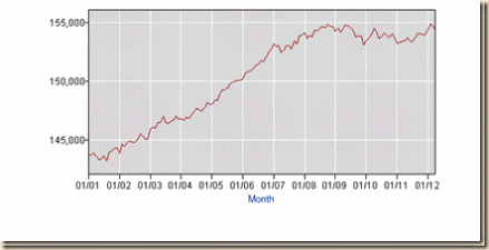 ESI Twenty Eight Million Unemployed or Underemployed and Declining Job Creation. Table ESI-1 consists of data and additional calculations using the BLS household survey, illustrating the possibility that the actual rate of unemployment could be 11.7 percent and the number of people in job stress could be around 27.8 million, which is 17.3 percent of the labor force. The first column provides for 2006 the yearly average population (POP), labor force (LF), participation rate or labor force as percent of population (PART %), employment (EMP), employment population ratio (EMP/POP %), unemployment (UEM), the unemployment rate as percent of labor force (UEM/LF Rate %) and the number of people not in the labor force (NLF). All data are unadjusted or not-seasonally-adjusted (NSA). The numbers in column 2006 are averages in millions while the monthly numbers for Apr 2011, Mar 2012 and Apr 2012 are in thousands, not seasonally adjusted. The average yearly participation rate of the population in the labor force was in the range of 66.0 percent minimum to 67.1 percent maximum between 2000 and 2006 with the average of 66.4 percent (ftp://ftp.bls.gov/pub/special.requests/lf/aa2006/pdf/cpsaat1.pdf). Table ESI-2 provides the yearly labor force participation rate from 1979 to 2012. The objective of Table ESI-1 is to assess how many people could have left the labor force because they do not think they can find another job. Row “LF PART 66.2 %” applies the participation rate of 2006, almost equal to the rates for 2000 to 2006, to the population in Apr and Mar 2012 and Apr 2011 to obtain what would be the labor force of the US if the participation rate had not changed. In fact, the participation rate fell to 63.9 percent by Apr 2011 and was 63.6 percent in Mar 2012 and 63.4 percent in Apr 2012, suggesting that many people simply gave up on finding another job. Row “∆ NLF UEM” calculates the number of people not counted in the labor force because they could have given up on finding another job by subtracting from the labor force with participation rate of 66.2 percent (row “LF PART 66.2%”) the labor force estimated in the household survey (row “LF”). Total unemployed (row “Total UEM”) is obtained by adding unemployed in row “∆NLF UEM” to the unemployed of the household survey in row “UEM.” The row “Total UEM%” is the effective total unemployed “Total UEM” as percent of the effective labor force in row “LF PART 66.2%.” The results are that: (1) there are an estimated 6.818 million unemployed in Apr 2012 who are not counted because they left the labor force on their belief they could not find another job (∆NLF UEM); (2) the total number of unemployed is effectively 18.728 million (Total UEM) and not 11.910 million (UEM) of whom many have been unemployed long term; (3) the rate of unemployment is 11.7 percent (Total UEM%) and not 7.7 percent, not seasonally adjusted, or 8.1 percent seasonally adjusted; and (4) the number of people in job stress is close to 27.8 million by adding the 6.818 million leaving the labor force because they believe they could not find another job. The row “In Job Stress” in Table ESI-1 provides the number of people in job stress not seasonally adjusted at 27.8 million in Apr 2012, adding the total number of unemployed (“Total UEM”), plus those involuntarily in part-time jobs because they cannot find anything else (“Part Time Economic Reasons”) and the marginally attached to the labor force (“Marginally attached to LF”). The final row of Table ESI-1 shows that the number of people in job stress is equivalent to 17.3 percent of the labor force in Apr 2012. The employment population ratio “EMP/POP %” dropped from 62.9 percent on average in 2006 to 58.4 percent in Apr 2011, 58.3 percent in Mar 2012 and 58.5 percent in Apr 2012; the number employed (EMP) dropped from 144 million to 141.9 million. What really matters for labor input in production and wellbeing is the number of people with jobs or the employment/population ratio, which has declined and does not show signs of increasing. There are around four million fewer people working in 2012 than in 2006 and the number employed is not increasing. The number of hiring relative to the number unemployed measures the chances of becoming employed. The number of hiring in the US economy has declined by 17 million and does not show signs of increasing in an unusual recovery without hiring (http://cmpassocregulationblog.blogspot.com/2012/04/fractured-labor-market-with-hiring.html).
