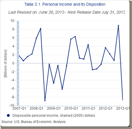“The February and January [2013] changes in disposable personal income (DPI) mainly reflected the effect of special factors in January, such as the expiration of the “payroll tax holiday” and the acceleration of bonuses and personal dividends to November and to December [2012] in anticipation of changes in individual tax rates.”