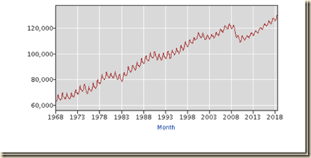 Chart IV-2DEF5 of the Federal Reserve Bank of Philadelphia Business Outlook survey provides current prices paid and received from 2007 to May 2018 with prices paid typically above prices received. The Business Outlook survey of the FRB of Philadelphia states: “Price increases for purchased inputs were reported by 55 percent of the manufacturers this month, down slightly from 59 percent in April. The prices paid diffusion index fell 4 points but remains at an elevated level (see Chart 2). The current prices received index, reflecting the manufacturers’ own prices, increased 7 points to a reading of 36.4, its second consecutive month of increase and highest reading since February 1989.” (https://www.philadelphiafed.org/research-and-data/regional-economy/business-outlook-survey/2018/bos0518).